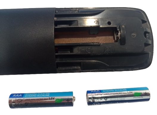 - Introduceți două baterii noi de tip AAA, având grijă la polaritate (consultați poză - primele cu partea negativă).